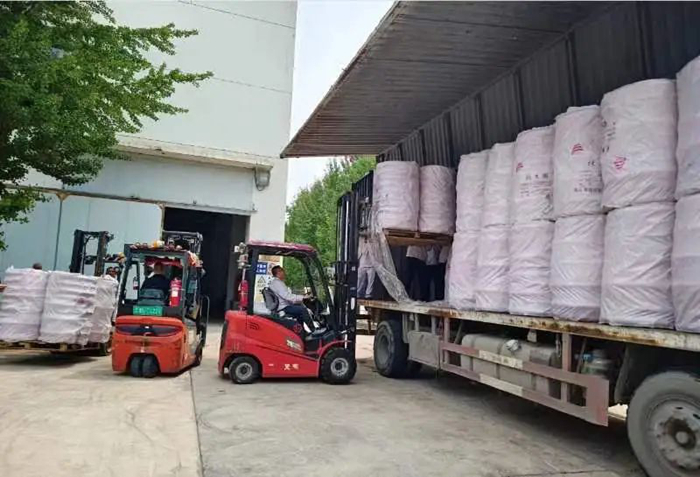 華騰化工立即調度人力、物力,爭分奪秒組織應急物資配送。歷經5個多小時不間歇備貨、裝載,滿載應急物資的4輛大貨車陸續發車,前往抗汛一線。