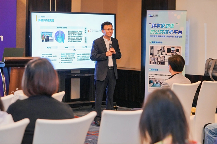 論壇中,北化生科黨總支書記、總經(jīng)理申海成從專業(yè)運(yùn)營空間、專業(yè)運(yùn)營團(tuán)隊(duì)和專項(xiàng)產(chǎn)業(yè)基金等多個(gè)方面,深度聚焦以核酸藥物為代表的五大細(xì)分賽道,向與會者詮釋“國際生物島”獨(dú)有的“1公里科學(xué)家鄰里”生態(tài),并通過高標(biāo)準(zhǔn)技術(shù)平臺、專項(xiàng)基金、技術(shù)審評、專屬空間、高科技人才和公共服務(wù)六大生態(tài)要素協(xié)同,系統(tǒng)闡釋從“0-1-N”的產(chǎn)業(yè)化路徑。